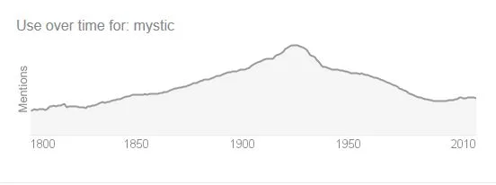 To begin, let us look at two Google-generated diagrams that illustrate the use of the words ‘esoteric’ and ‘mystic’ since the early 19th century.