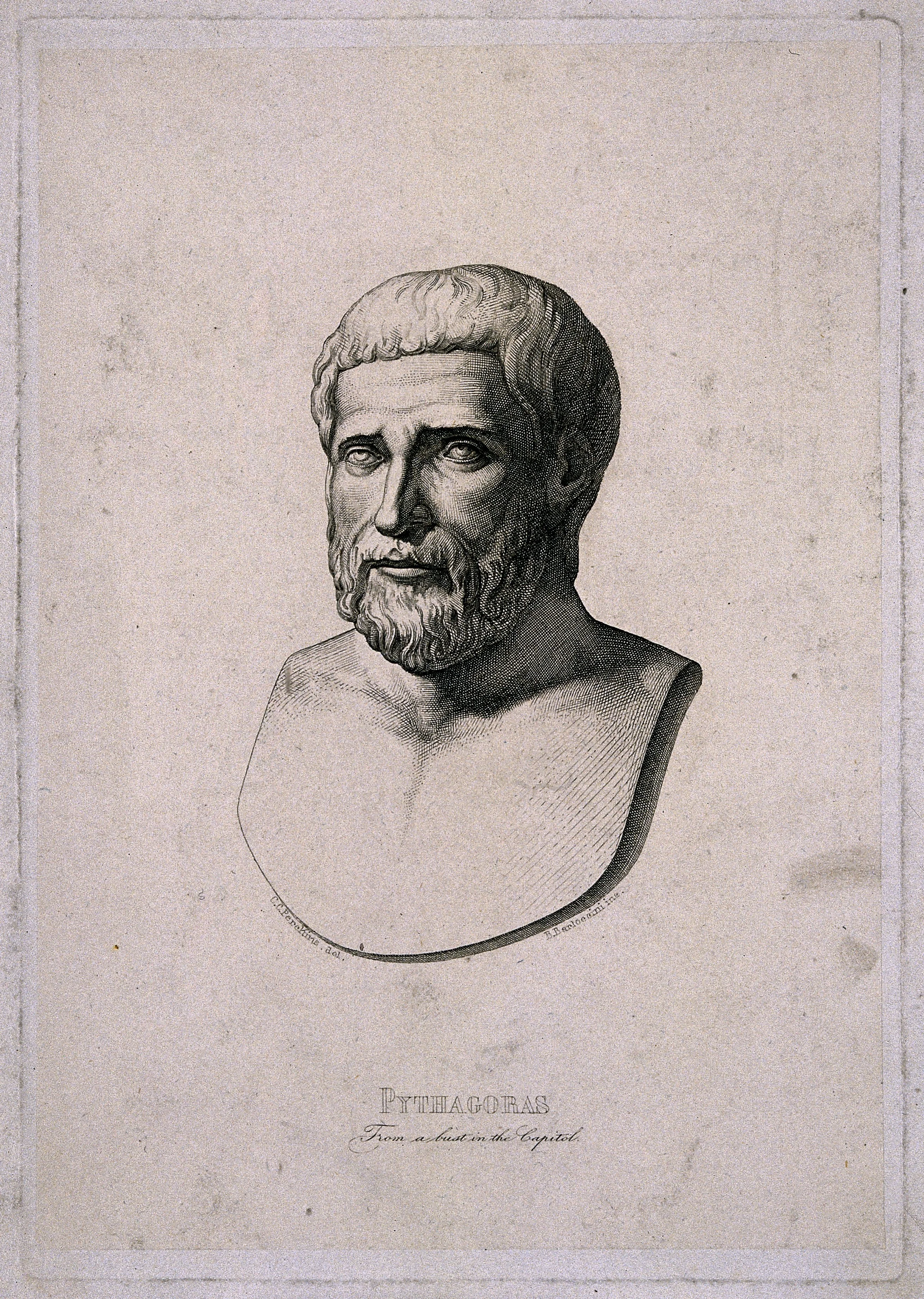 Pythagoras, line engraving by B. Barloccini after C.C. Perks, 1849