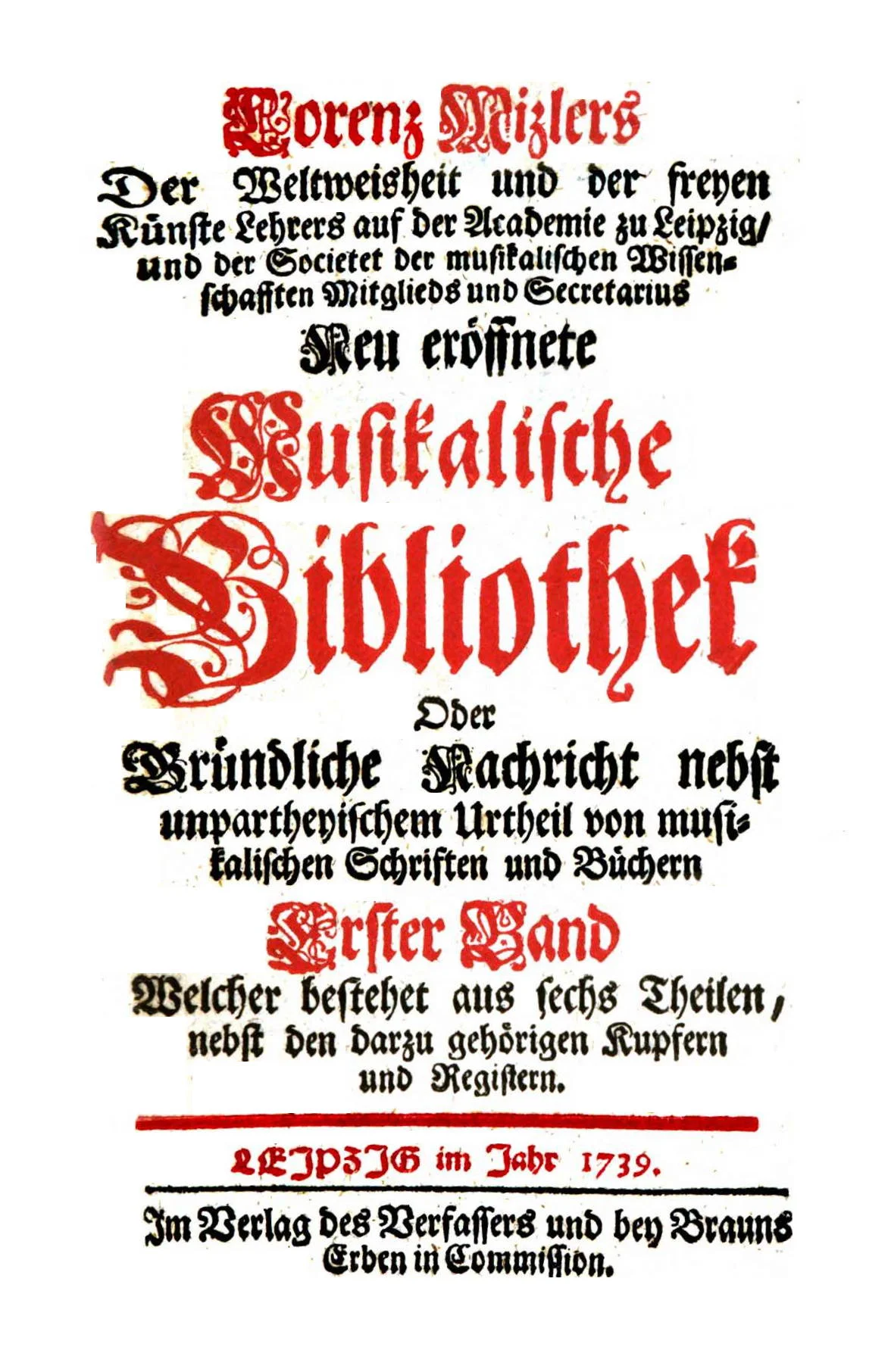 Title page of one of the issues of Mizler's Musikalische Bibliothek journal, Leipzig, 1739.
