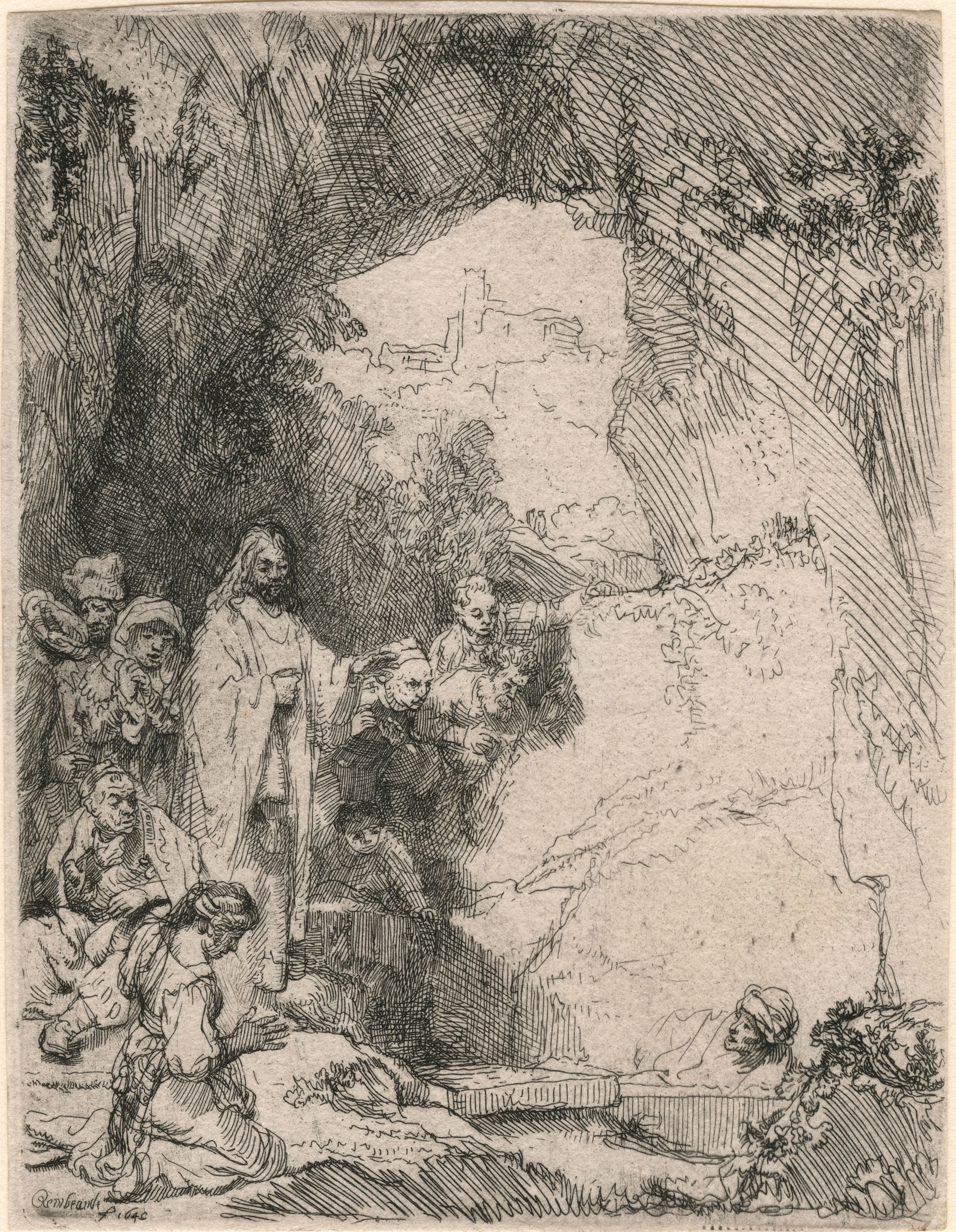 Rembrandt, Raising of Lazarus, etching, 1642, Morgan Museum and Library, New York