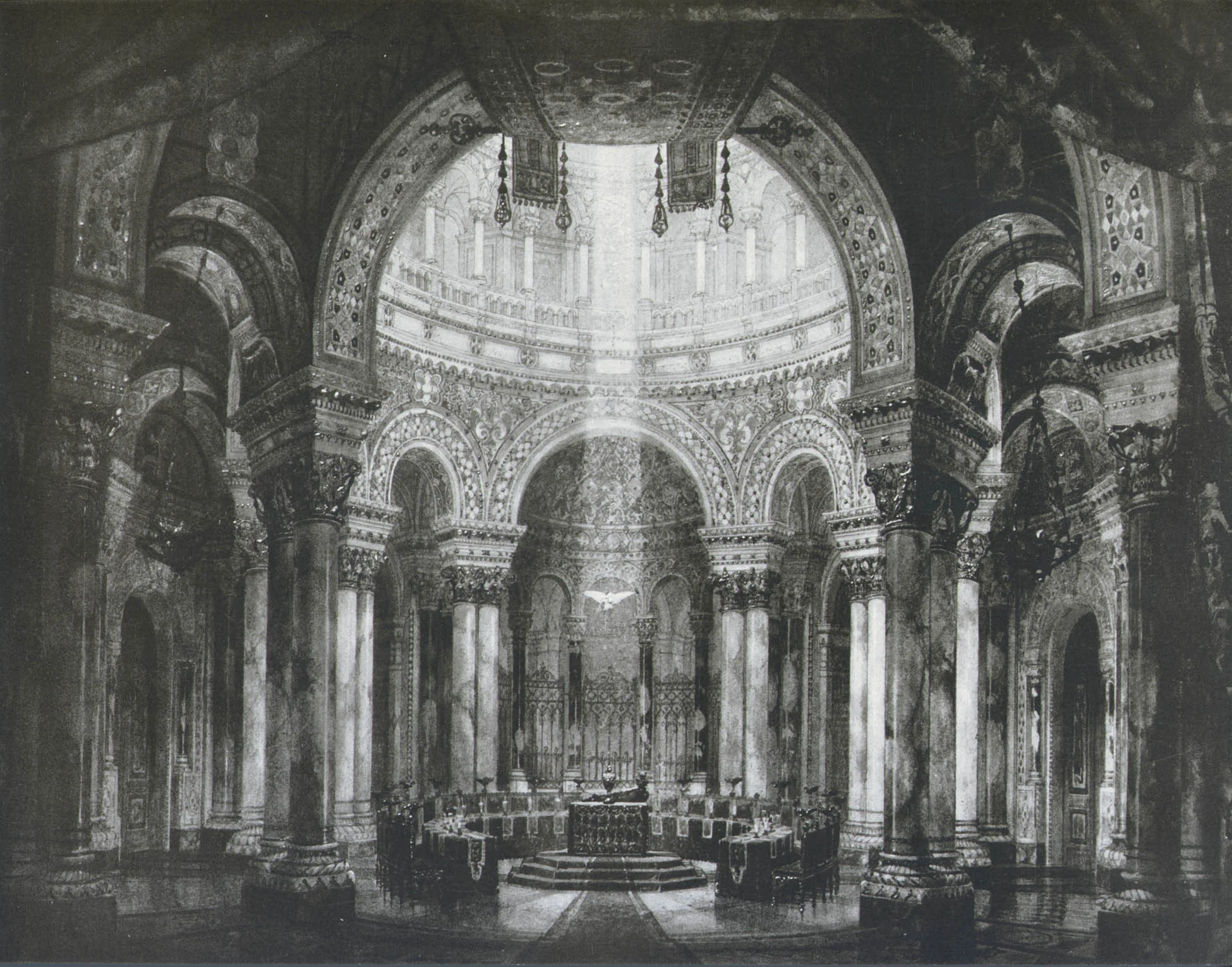 Temple of the Holy Grail, stage set by Paul von Joukowsky for the first Parsifal production at Bayreuth, 1882, Met Opera Archives