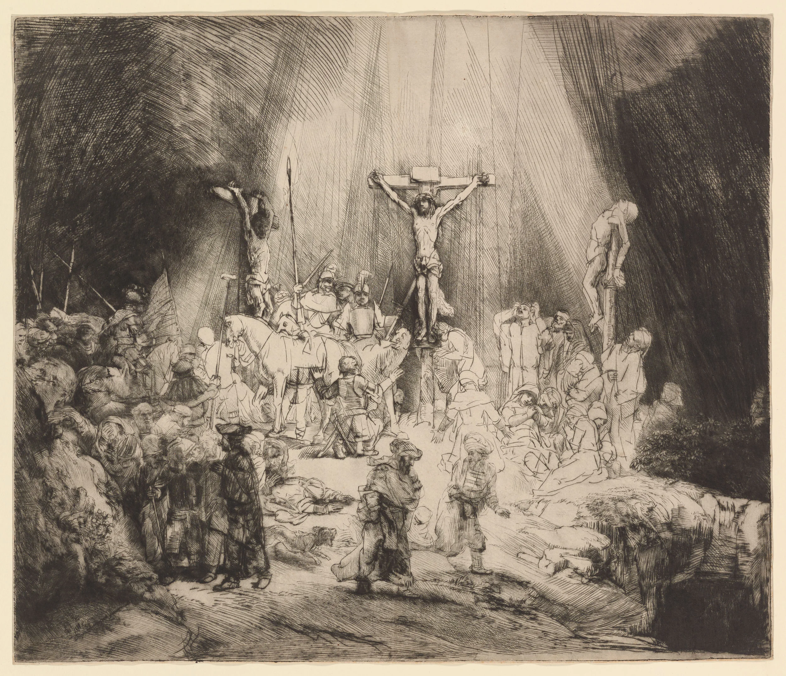 Rembrandt, Christ Crucified Between the Two Thieves (“The Three Crosses”), drypoint, 1653, Museum of Fine arts, Boston