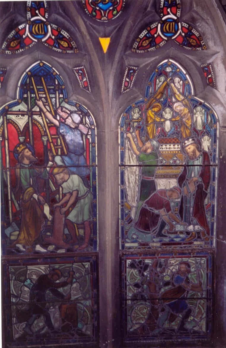 Fig. 6: The Masonic window in the chapel of Newstead celebrating the construction of Solomon’s Templ